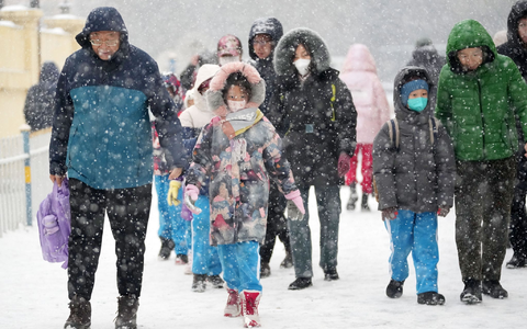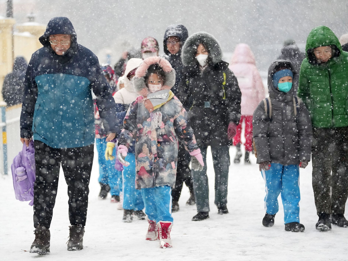 Eltern bringen ihre Kinder in Harbin zur Schule. - Foto: Wang Jianwei/XinHua/dpa