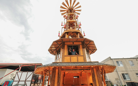 Eine der größten Weihnachtspyramiden der Welt entsteht