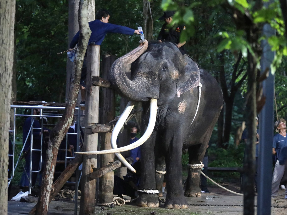In Thailand wurde der Vier-Tonnen-Koloss von Umweltminister Varawut Silpa-archa im Empfang genommen und von Tierärzten untersucht. Sein Zustand sei so gut gewesen, dass er laut Medien umgehend mit einem Spezialtransporter und unter Polizeischutz ins 70 Kilometer entfernte Thai Elephant Conservation Center in Lampang gebracht worden sei.