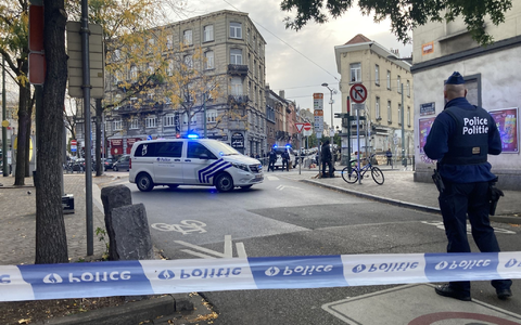 Ermittler arbeiten am Ort der Schießerei in Brüssel. - Foto: Nicolas Landemard/AP/dpa Polizeisperrung im Zentrum von Brüssel. - Foto: Nicolas Landemard/AP/dpa Schwedische Fußballfans spenden sich Trost. Das EM-Qualifikationsspiel zwischen Belgien und Schweden wurde nach den Schüssen in Brüssel abgebrochen. - Foto: Bruno Fahy/Belga/dpa Die Polizei sperrt eine Straße, während ein Polizist hinter Absperrband Wache steht. - Foto: Lou Lampaert/Belga/dpa