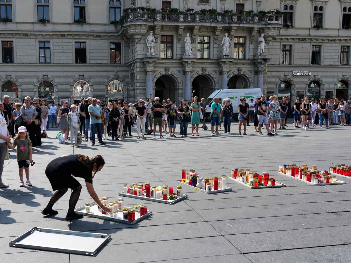 Am Tag nach dem Amoklauf stand aber vor allem die Trauer im Vordergrund. Um 10.00 Uhr stand das öffentliche Leben in Österreich für eine Minute vielerorts still. So blieben 900 Busse, Straßen- und U-Bahnen in Wien kurz stehen. Die Trauerglocke des Wiener Stephansdoms wurde nach Angaben der Erzdiözese Wien geläutet. Auch in Graz wurde der Toten und Verletzten gedacht.