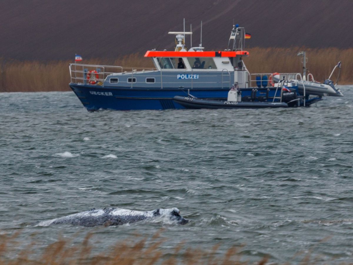 Auf Livestreams war zu sehen, wie der Wal nahe von Fahrwassertonnen wieder auf Grund liegt. Er liege nach vorliegenden Erkenntnissen nicht vollständig auf, sagte Mecklenburg-Vorpommerns Umweltminister Till Backhaus (SPD) am frühen Mittag. «Er könnte nach links ohne weiteres ausweichen, um dann in tiefes Fahrwasser zu kommen, um ihn dann aus dem Kirchsee herauszuführen.»