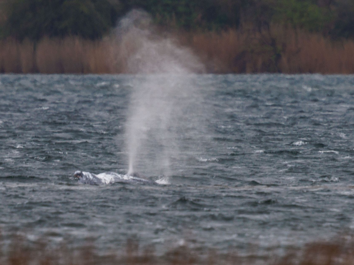 • Nach rund zwei Stunden verharrte der Wal wieder, diesmal am Ausgang des Kirchsees. - Foto: Jens Büttner/dpa