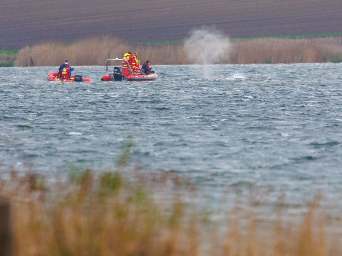 Mobilsierungsversuche gab es ab Mittag. - Foto: Jens Büttner/dpa Am Morgen ist der gestrandete Buckelwal frei im Wasser geschwommen.    - Foto: Jens Büttner/dpa Zunächst schlug der Wal immer wieder die falsche Richtung ein. - Foto: Jens Büttner/dpa Ist der Wal desorientiert - oder will er in flaches Wasser? - Foto: Jens Büttner/dpa Nach rund zwei Stunden verharrte der Wal wieder, diesmal am Ausgang des Kirchsees. - Foto: Jens Büttner/dpa Die Zeit drängt, weil der Wasserstand sinkt. - Foto: Jens Büttner/dpa Sinkende Wasserstände bedeuten ein großes Risiko für den Wal (Archivbild). - Foto: Marcus Brandt/dpa Mit Booten wurde versucht, den gestarteten Wal in die richtige Richtung zu treiben.  - Foto: Jens Büttner/dpa