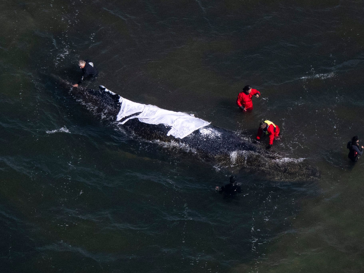 Ob der Buckelwal die Rettungsversuche überlebt, ist offen. Experten zufolge ist er stark geschwächt.