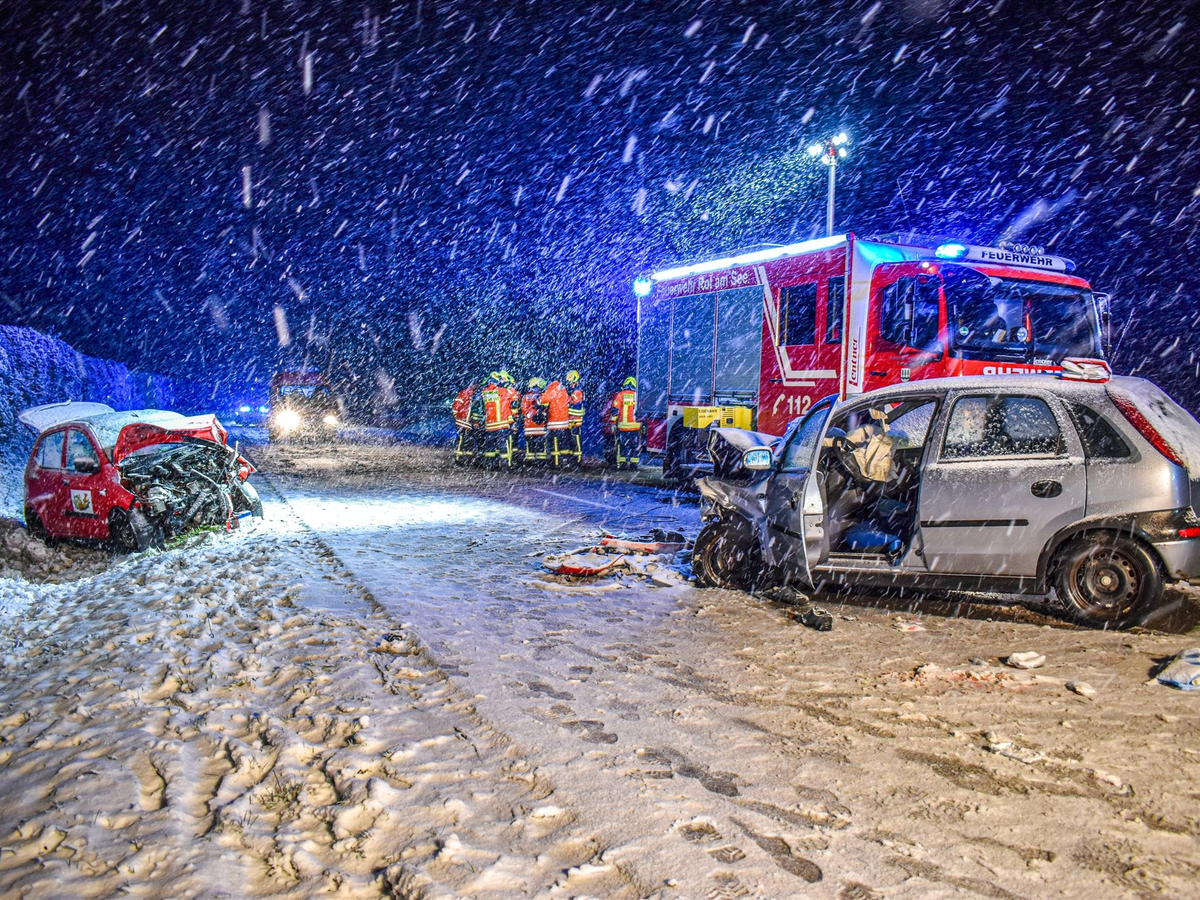 Die meisten Unfälle hatten nur Blechschäden und leichte Verletzungen zur Folge. Aber es gab auch schwere Unglücke: Weil er laut Polizei auf schneebedeckter Straße zu schnell unterwegs war, krachte ein 29 Jahre alter Autofahrer in Oberfranken in ein Waldstück und wurde schwerst verletzt. Der Mann verlor demnach am Montagabend bei Hof in einer leichten Kurve die Kontrolle über sein Fahrzeug. Dadurch stieß er mit so großer Wucht gegen Bäume, dass sein Wagen zurückgeschleudert wurde.