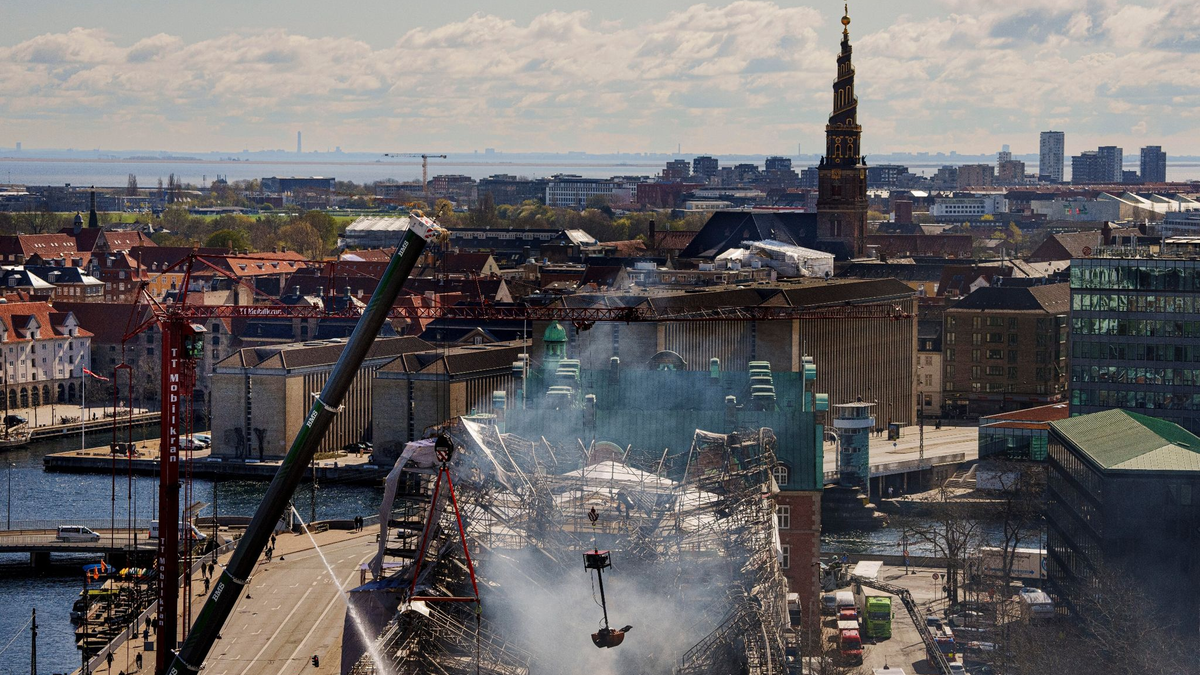 18.04.2024 - 17:43:25 | dpa.deVon einer auf die andere Sekunde stĂŒrzen Mauern der ausgebrannten HĂ€lfte der historischen Börse in Kopenhagen in sich zusammen. Dabei hatte die Feuerwehr noch kurz zuvor Hoffnung, dass die letzten Ăberreste der beschĂ€digten Seite des bekannten Bauwerks in der dĂ€nischen Hauptstadt gerettet werden können.