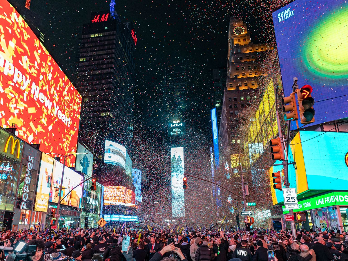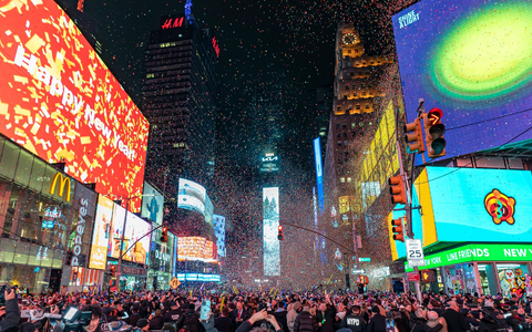 Fast 400.000 Menschen laufen nach Zählungen des Nachbarschaftsverbands Times Square Alliance inzwischen jeden Tag rund um die Uhr über die «Kreuzung der Welt». Rund dreimal so viele sind es jährlich an Silvester, wenn auf dem Platz mit Konfetti sowie den Liedern «Auld Lang Syne» und «New York, New York» das neue Jahr eingeleitet wird. Die Augen von Millionen Menschen - auf dem Platz selbst und auf Bildschirmen weltweit - sind dann auf die Spitze von «One Times Square» gerichtet, wo für den sogenannten «Ball Drop» traditionell eine leuchtende Kristallkugel an einem Fahnenmast heruntergleitet.