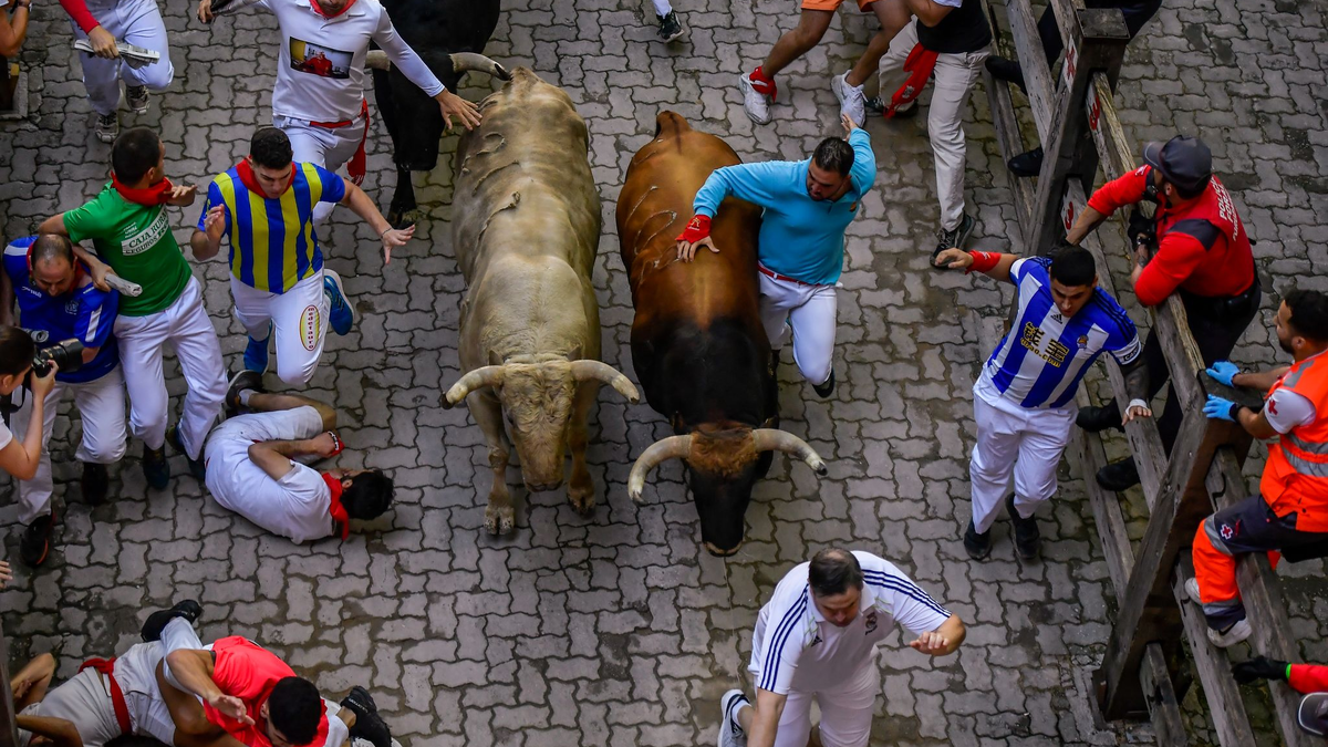 Gefährlich ist das wilde Spektakel nicht nur für die Tiere: Bei den Mutproben der vorwiegend jungen Läufer über die 875 Meter lange Strecke der Stierhatz gibt es jedes Jahr Verletzte. Seit 1924 gab es auch 16 Todesopfer, das letzte allerdings vor 15 Jahren.