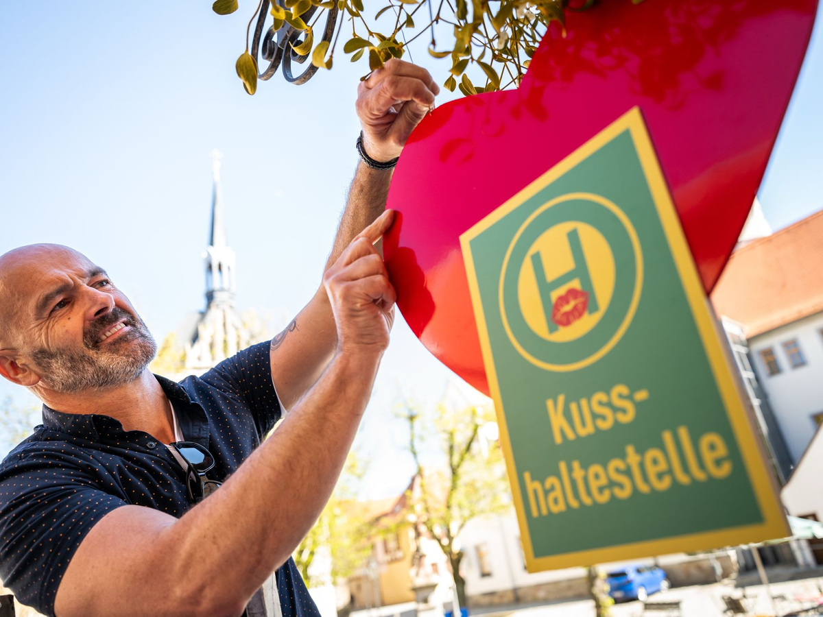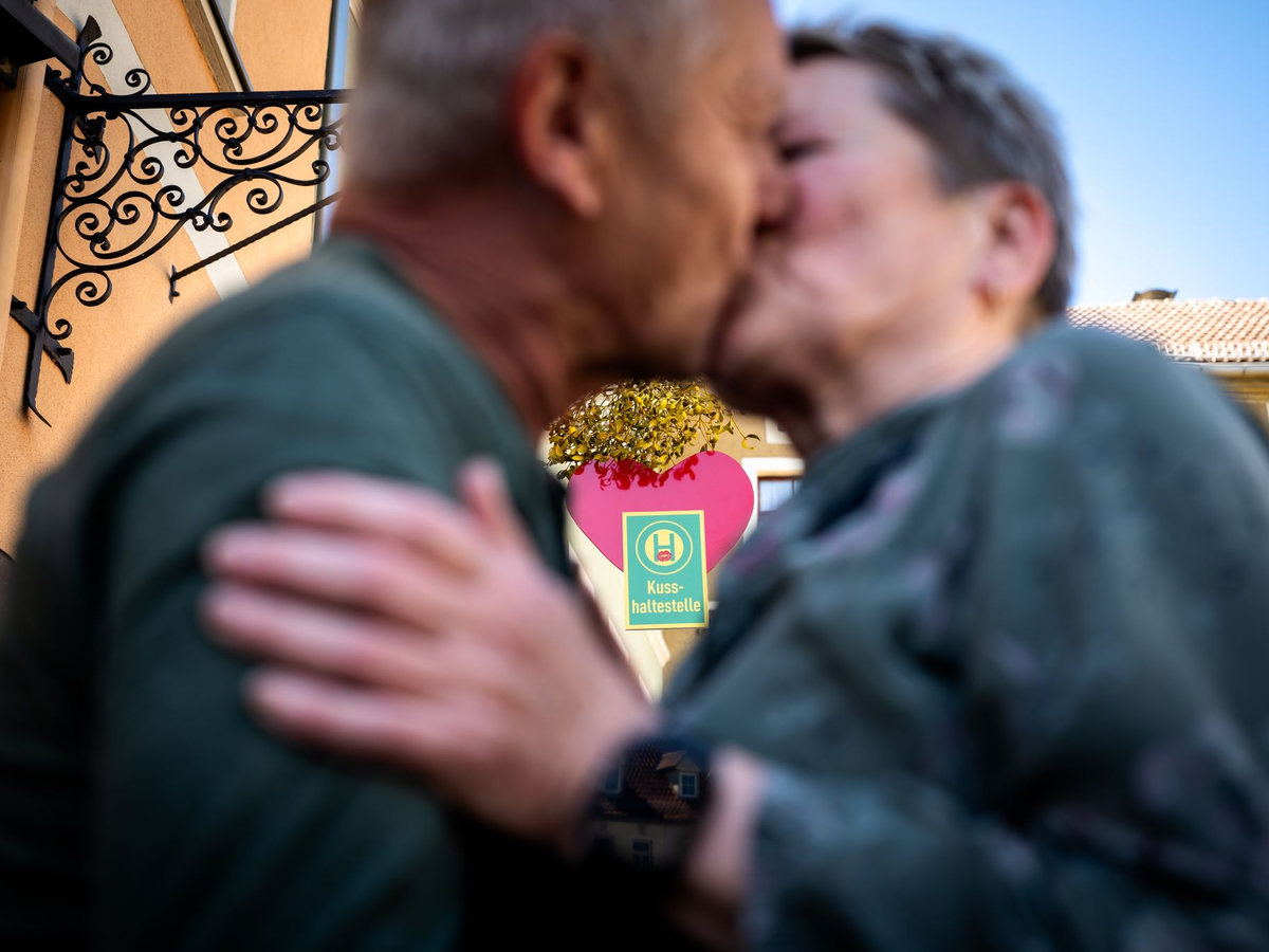 24.04.2026 - 04:00:37 | dpa.deHeute schon geküsst? Auf dem Markt im ostthüringischen Eisenberg können frisch und langjährig Verliebte ab sofort einen Kuss-Stopp einlegen. Vor einer Woche hat Café- und Hotelbetreiber Jost Samorski hier die neue «Kusshaltestelle» eingerichtet. Die Idee dazu habe er schon seit etwa zwei Jahren. Jetzt im Frühling sei es Zeit gewesen, das zu verwirklichen, sagt er.