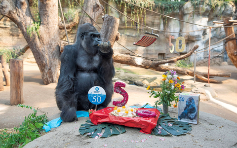 Silberrücken-Geburtstag: Torte zum 50. für Gorilla Assumbo