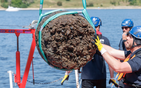 Ein von Muscheln und Seepocken bedecktes Holzfass war das erste, was der Hydraulikkran des Spezialschiffs «St. Perun» am Montag zu Tage gefördert hat. «Rund 170 solcher FÀsser liegen dort unten und werden in den nÀchsten Tagen gehoben», sagte der Projektleiter und Unterwasser-ArchÀologe, Felix Rösch.
