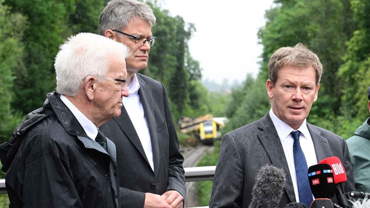 «Man kann die Kraft der Verheerung noch sehen, die hier gewütet hat», kommentiert Bundesverkehrsminister Patrick Schnieder (CDU) den Anblick der Unfallstelle. Es sei erschütternd. Bahnchef Richard Lutz ringt um Fassung: «Solche Bilder gehen bei uns ins Mark», sagt er in Riedlingen.