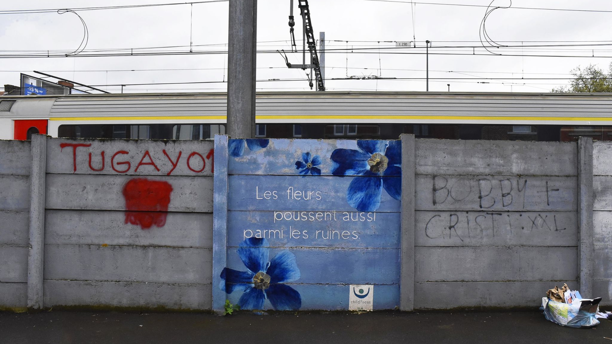 Ob Belgien sich je ganz von seinem Trauma erholen kann? Auch am Ort der Beruhigung, wie die Stadt Charleroi den Gedenkgarten nennt, fällt es schwer. Alle paar Minuten fährt ein Zug vorbei. Autos rasen an der angrenzenden Schnellstraße auf der Überführung. Eine dünne Steinwand dämpft - kaum merklich - den Lärm. Nur ein Wandbild bringt etwas Farbe an diesen trostlosen Ort. Zwischen blauen Blüten steht hier auf Französisch: «Auch zwischen den Ruinen wachsen Blumen.»