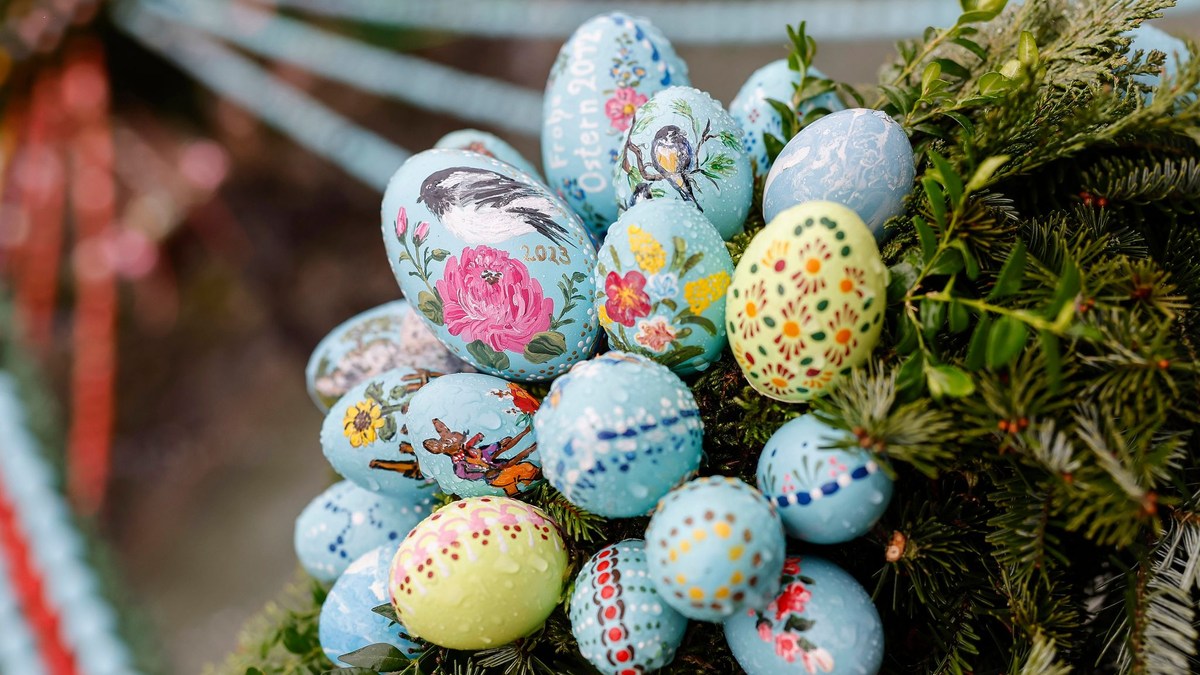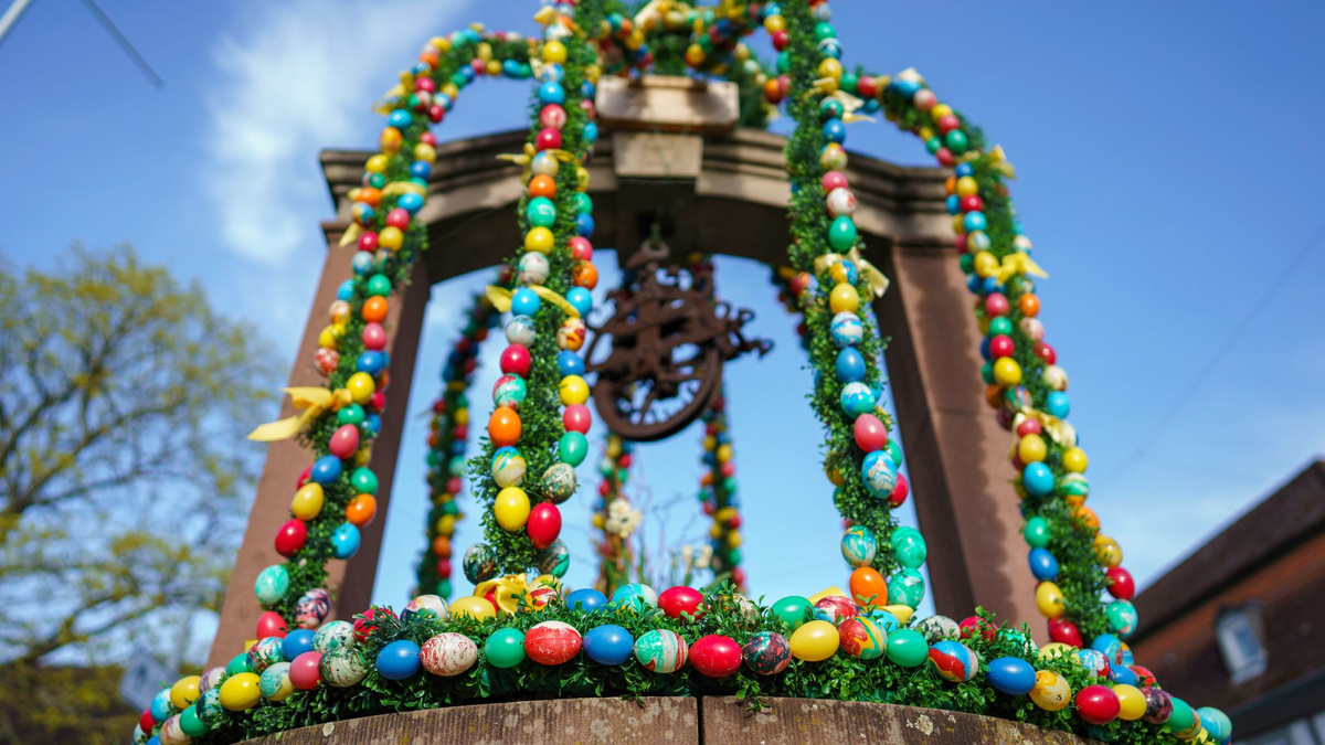 ... dann ist vielleicht noch Zeit für weitere Bräuche rund um Ostern: In einigen Regionen Deutschlands werden beispielsweise Brunnen festlich mit bunten Eiern geschmückt. Im fränkischen Bieberbach (Landkreis Forchheim) sind mehr als 10.000 Eier als kleine Kunstwerke verziert und an Girlanden aus Zweigen rund um eine Wasserstelle befestigt. In katholischen Gegenden hält sich der Brauch, so genannte Heilige Gräber in den Kirchen herzurichten, also eine Jesusfigur in eine Art reich verziertes Schaugrab zu legen.