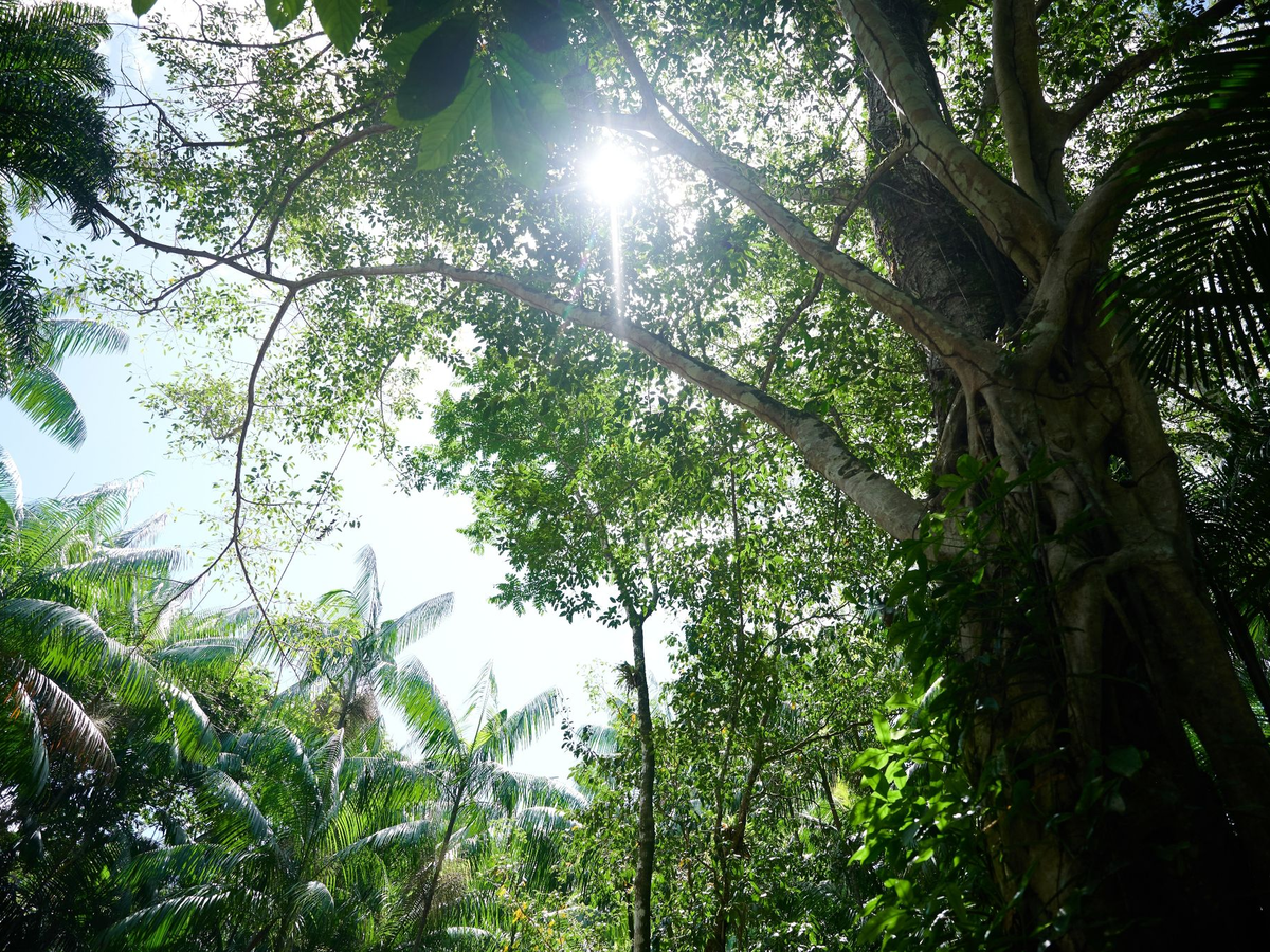 Die Sonne scheint durch das Blätterdach des Regenwalds nahe der nordbrasilianischen Stadt Belem. - Foto: Annette Riedl/dpa