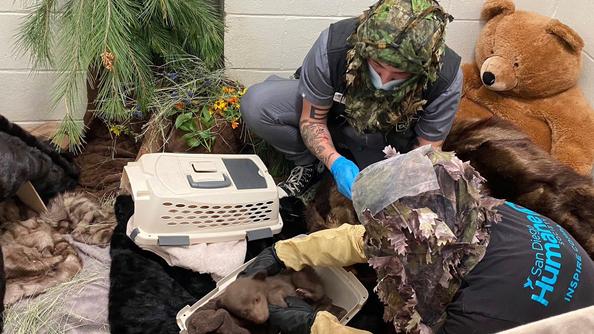 Ein in der Wildnis gefundenes und verwaistes BĂ€renjungtier wird in einer Tierstation im US-WestkĂŒstenstaat Kalifornien mit ungewöhnlichen Methoden aufgezogen: Pfleger mit BĂ€renmaske und Pelzmantel geben dem Kleinen das FlĂ€schchen, andere tragen TarnanzĂŒge und mit Laub bespickte Kapuzen, wie auf Fotos der Tierschutzorganisation San Diego Humane Society zu sehen ist.