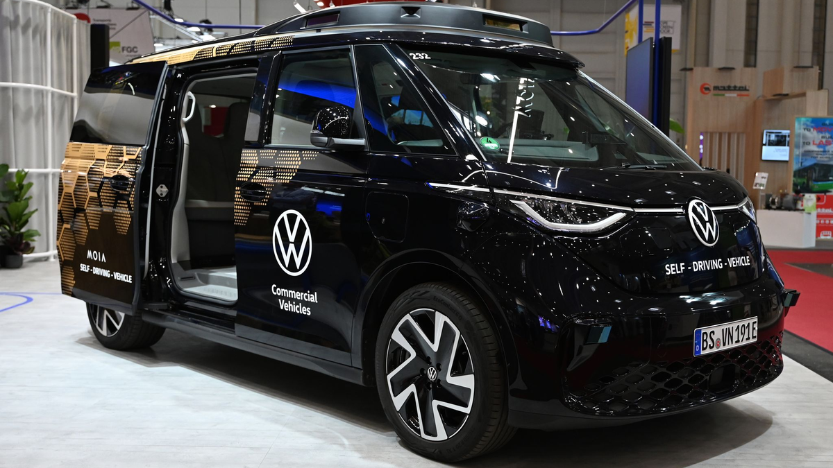 17.06.2025 - 20:00:36 | dpa.deVolkswagen hat sein erstes komplett autonom fahrendes Serienauto präsentiert. In Hamburg zeigte Europas größter Autobauer die Serienversion des selbstfahrenden Elektro-Bullis ID Buzz AD (für autonomous driving). Erstmals zum Einsatz kommen soll er ab 2026 zunächst in Hamburg und Los Angeles. Weitere Städte sollen folgen.