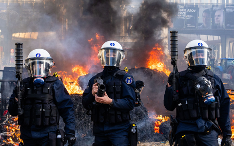 Wie die Polizei weiter mitteilte, hĂ€tten Landwirte versucht, von den SicherheitskrĂ€ften eingerichtete Sperren zu ĂŒberwinden. Zudem wurden BrĂ€nde gelegt, Pyrotechnik gezĂŒndet und TrĂ€nengas eingesetzt, wie auf Bildern zu sehen war. Die Angriffe der Demonstranten mit Kartoffeln und Feuerwerk richteten sich auch gegen das Europaparlament.Â