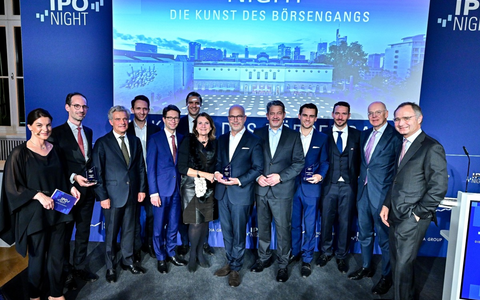 Den Preis für die "Herausragende Eigenkapitalfinanzierung" erhielt Vossloh. Der Bahntechnik-Konzern hatte im Zuge der Übernahme des europäischen Betonschwellenherstellers Sateba eine Kapitalerhöhung über 72 Millionen Euro erfolgreich umgesetzt und so seine Position im Schienenmarkt gestärkt. Laudator Berthold Fürst, Head of Investment Banking DACH bei der Deutschen Bank, lobte: "Vossloh hat strategisch wichtige Weichenstellungen ermöglicht, finanzielle Spielräume eröffnet und Anleger begeistert." Der Aktienkurs stieg in den Monaten nach der Transaktion um rund 80 Prozent. Unter den Gästen der IPO Night waren zahlreiche Spitzenvertreter aus Wirtschaft, Politik und Investment, darunter Commerzbank-Chefin Bettina Orlopp, Philippe Oddo, CEO der gleichnamigen ODDO BHF-Bank, André Munkelt, CEO JPMorgan Europe sowie Deutsche-Börse-Chef Stephan Leithner. Als Special Guest begeisterte der frühere Skirennläufer und Weltmeister Felix Neureuther das Publikum und zeigte sich selbst angetan von der Veranstaltung: "Ich mag es, mit dem Rücken zur Wand zu stehen und zu sagen: Jetzt krempeln wir die Ärmel hoch. Diese Mentalität spürt man hier deutlich."