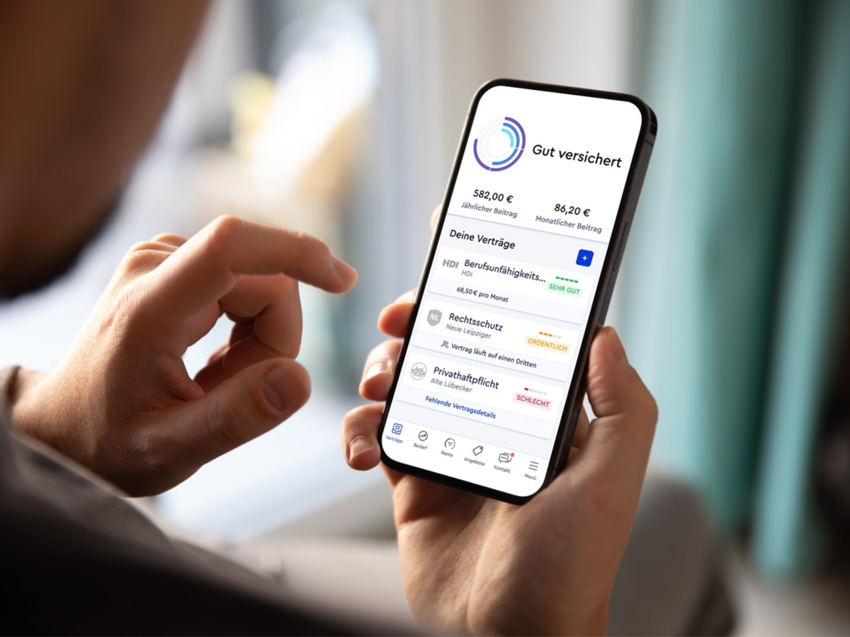 Nach dem Upload der Versicherungsverträge in die App prüft der Algorithmus Kosten und Leistungen der jeweiligen Policen und vergleicht sie mit Tausenden Tarifen von über 180 Versicherern auf dem Markt. Danach erfolgt die Bewertung in grün, gelb und rot. Grün signalisiert: Super, der Vertrag hat ein top Preis-Leistungs-Verhältnis. Gelb heißt: Hier gibt es Verbesserungspotenzial. Rot bedeutet: Achtung, hier ist ein teurer Vertrag mit wenigen Leistungen.