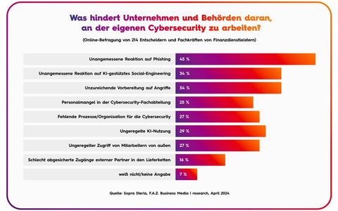 Ein Handlungsfeld ist beispielsweise die wirksame Sensibilisierung für die neuen Risiken, auch mithilfe von KI-Technologie: "Nicht jeder Mitarbeitende oder jede Kundin fällt auf dieselben Tricks herein. Unternehmen benötigen somit dieselben Möglichkeiten für Vervielfältigung und Personalisierung von Aufklärungsmaßnahmen wie die Angreifer", sagt Stefan Beck, Experte für Managed Security Services bei Sopra Steria. "Lernende KI-Tools können unter anderem helfen, individuelle Awareness-Lücken zu schließen und Aufklärungskampagnen an neue oder nicht bekannte Angriffsmuster anzupassen."