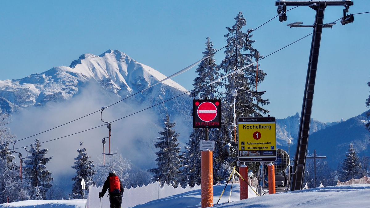 Ein einsamer Skitourengeher im noch nicht geöffneten Skigebiet von Garmisch-Partenkirchen. Nach zwei guten Wintern könnte die diesjährige Saison für die Urlaubsorte in den Alpen schlechter ausfallen. - Foto: Carsten Hoefer/dpa