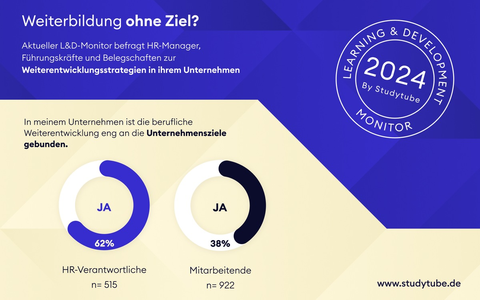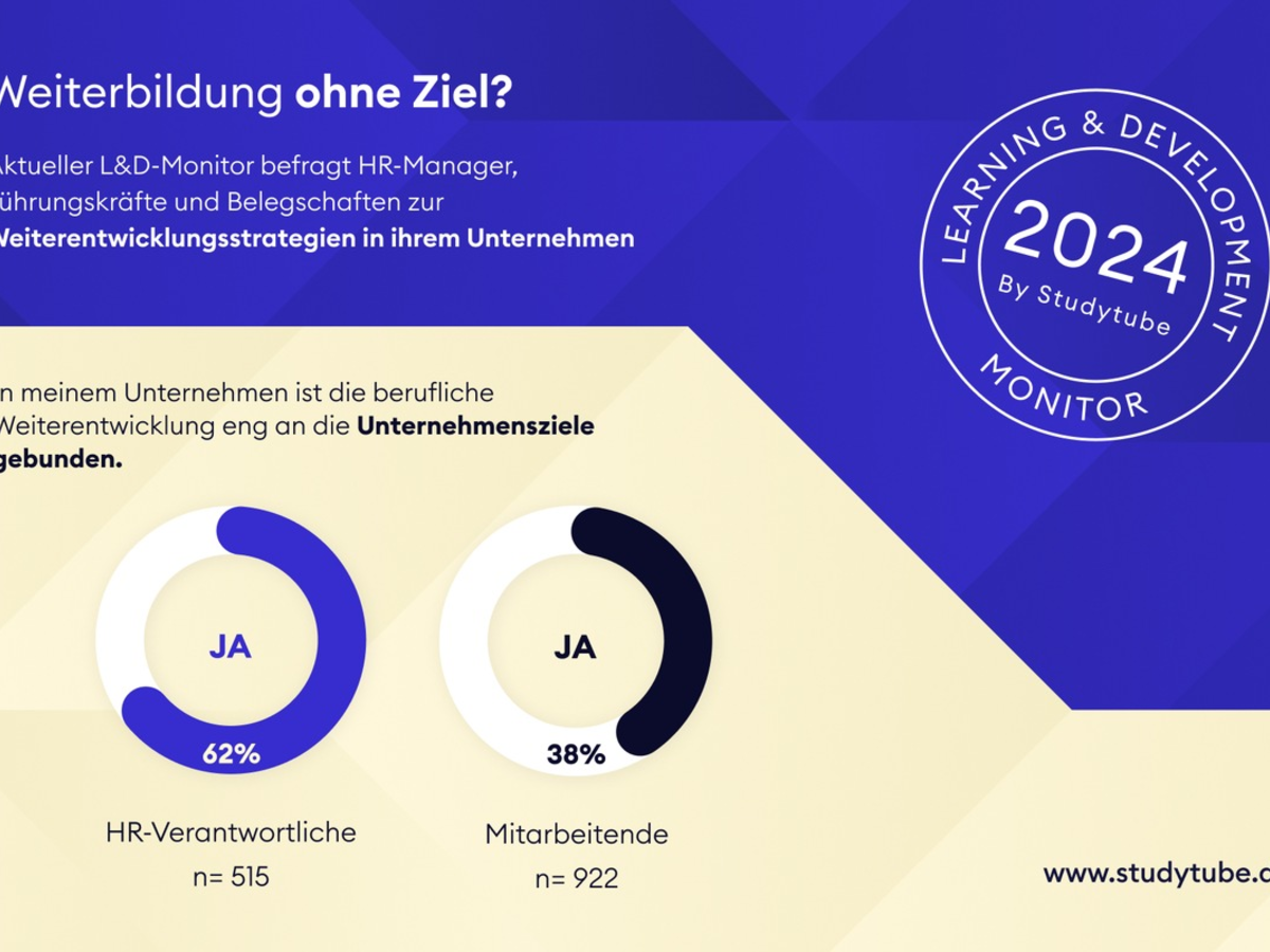Schon seit 2020 untersucht Studytube mit dem Learning & Development Monitor in den Niederlanden aktuelle Trends und Schwerpunktthemen beim beruflichen Lernen und in der beruflichen Weiterentwicklung. 2024 erscheint zum zweiten Mal eine deutsche Version. Für die Deutschland-Ausgabe hat das Marktforschungsinstitut Motivaction 515 HR-Verantwortliche (L&D-Manager und andere), 362 Führungskräfte sowie 922 Mitarbeitende aus Organisationen mit über 200 Mitarbeitenden online befragt. Der Befragungszeitraum lag im Januar 2024. Der erste Teil vom großen Learning & Development Monitor 2024 kann unter folgendem Link heruntergeladen werden: www.studytube.de/learning-und-development-monitor-2024 (ab 12. März verfügbar)