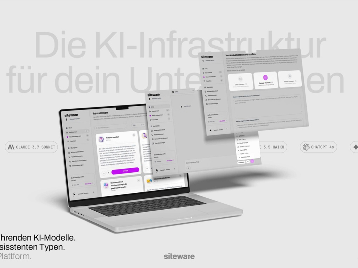Die Siteware GmbH entwickelt eine DSGVO-konforme KI-Plattform für Unternehmen. Siteware vereint verschiedene KI-Anwendungsformen - darunter Chat, Formular, Workflow und Voice - in einer zentralen Lösung und ermöglicht die Nutzung führender KI-Modelle innerhalb eines Systems. Ziel ist es, Unternehmen eine skalierbare KI-Infrastruktur bereitzustellen, die Produktivität erhöht und gleichzeitig Compliance- und Kontrollanforderungen in Europa erfüllt.