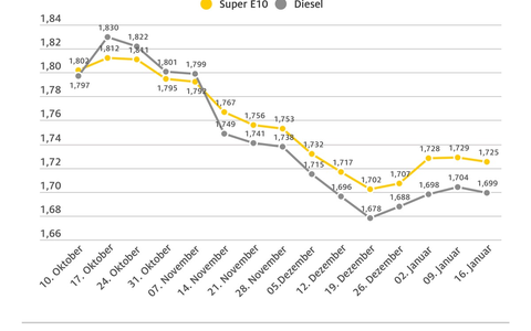 Spritpreise geben etwas nach / Ölpreis weitgehend stabil / Diesel trotz Steuervorteil nur 2,6 Cent billiger als Super E10