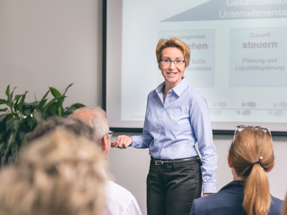 "Versteh Deine Zahlen und hol sie an Deinen Tisch", lautet das Credo von Elke Limmer. Neben speziellen Tools, die Unternehmen die Möglichkeit geben, ihre Zahlen zu managen, legt Elke Limmer den Grundstein durch praxisnahe Seminare. Hier werden Unternehmer geschult, ihre Finanzen zu verstehen, proaktive Entscheidungen zu treffen und so den Unternehmenserfolg zu steuern. Das Seminarangebot reicht dabei von der Interpretation vergangener Geschäftsdaten aus der Buchhaltung bis zur vorausschauenden Finanz- und Liquiditätsplanung und der Entwicklung passgenauer Kalkulationen.