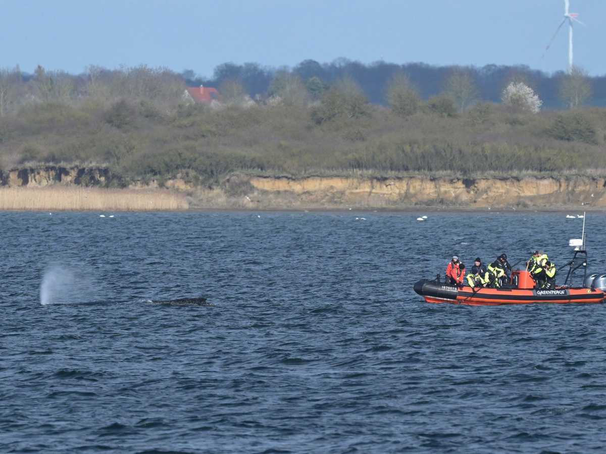 Auch die Wasserschutzpolizei ist mit dem Küstenstreifenboot «Hoben» vor Ort. Zumindest sei der Wal nicht sehr weit in die Bucht hineingeschwommen, so Maack. Sollte das laut Greenpeace sehr geschwächte Tier sich abermals freischwimmen, würde es im besten Fall die Route nehmen, über die es auch in die Ostsee gelangt war.
