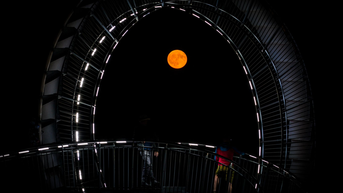 Wie hier in Duisburg sorgte der Erdbeermond vielerorts für schöne Aussichten. - Foto: Christoph Reichwein/dpa