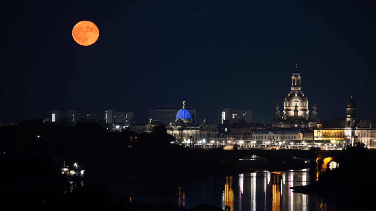 Der Erdbeermond über Dresden - Foto: Sebastian Kahnert/dpa