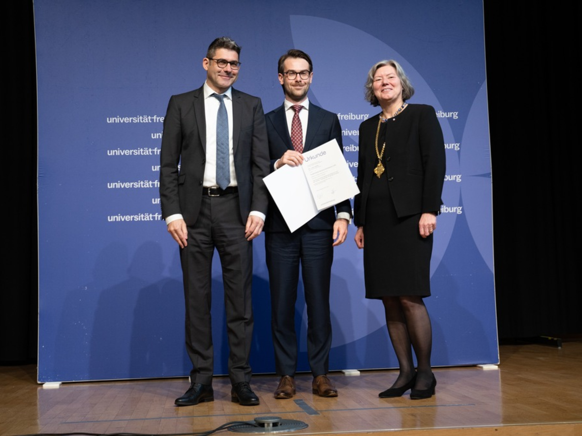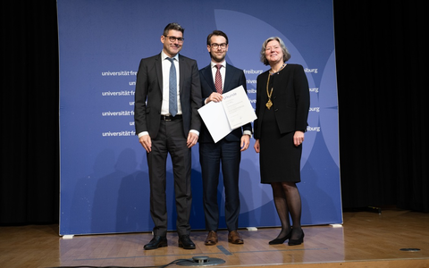 Der nach Rudolf Haufe benannte Preis wird seit 2002 vergeben und soll junge Wissenschaftler:innen dazu ermutigen, innovative Ideen zu entwickeln, die nicht nur theoretisch fundiert sind, sondern auch praktische Impulse setzen. Für den Nachwuchsförderpreis in Höhe von 5.000 Euro können Doktorarbeiten aus den rechts- und wirtschaftswissenschaftlichen Fakultäten der Albert-Ludwigs-Universität Freiburg vorgeschlagen werden. Aus den eingegangenen Arbeiten wählt ein Kuratorium, bestehend aus einem Beauftragen des Rektors, den beiden Dekanen der Fakultäten und einem Vertreter von Haufe, den Preisträger aus. Für die Marke Haufe war auch in diesem Jahr Miron Schneckenberger beteiligt, Teamleiter der juristischen Fachredaktion, Jurist und ebenfalls ein Absolvent der Uni Freiburg.