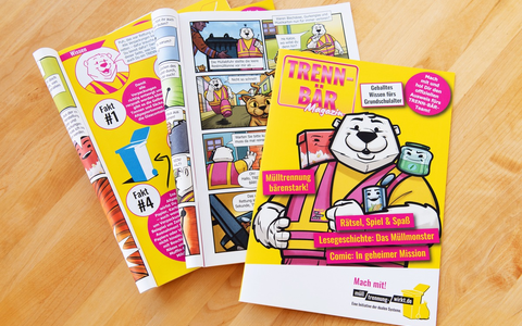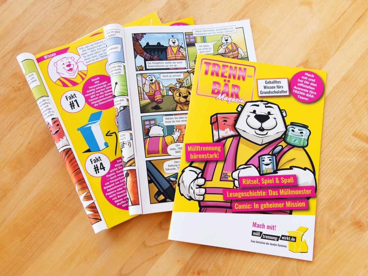 Ebenso wie die Trenn-Bär-Box, die von Kindergärten bestellt werden kann, ist auch das Magazin kostenlos erhältlich. Ausgeliefert werden jeweils 30 Exemplare an Grundschulklassen, deren Lehrkräfte das Formular unter www.mülltrennung-wirkt.de/trennbaer-magazin ausfüllen. Die Bearbeitung des Magazins setzt ausreichende Lesefähigkeiten voraus.