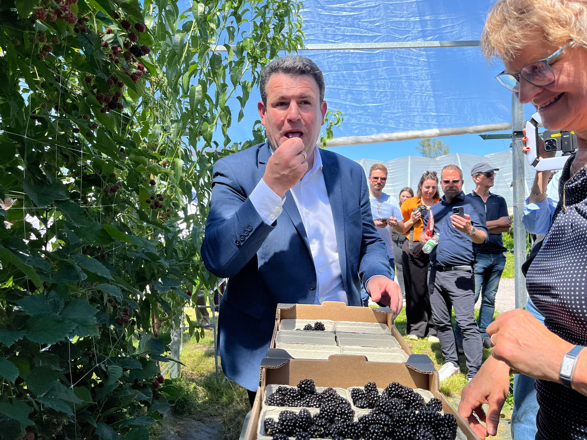 «Wie lange dauert es, bis das kein Prototyp mehr ist», fragte Heil. Max-Planck-Gruppenleiter Dieter Büchler antwortete, es dauere noch, bis der Roboter zum Beispiel Erdbeeren am Boden, teils von Blättern verdeckt, pflücken könne. Heute würden Feldfrüchte oft so gezogen und angebaut, dass die Maschinen sie leichter erreichen können. Doch - so der Forscher - die Entwicklung gehe rasant. Die Techniker bringen den Maschinen menschliche Bewegungen bei. Auch Erdbeeren am Boden seien wohl bald kein Problem mehr. Prognosen über die Wucht der Veränderungen seien wegen des Tempos des Wandels kaum möglich. «Es kann gut sein, dass wir erst am Anfang der Entwicklung sind», so der Tübinger Forscher.